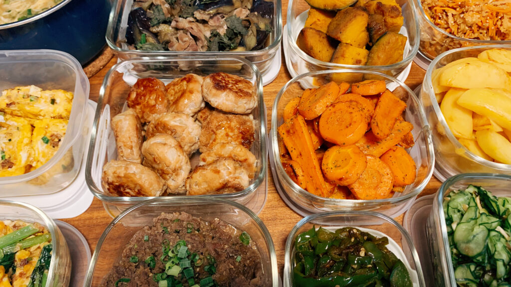 7月8日(火)。毎週月曜の作り置きは翌日火曜に。美味しいつくねがたくさん出来ました。鶏・豚・牛と3種類の肉のおかずが取り揃えられて満足(*’ω’*)エヘン