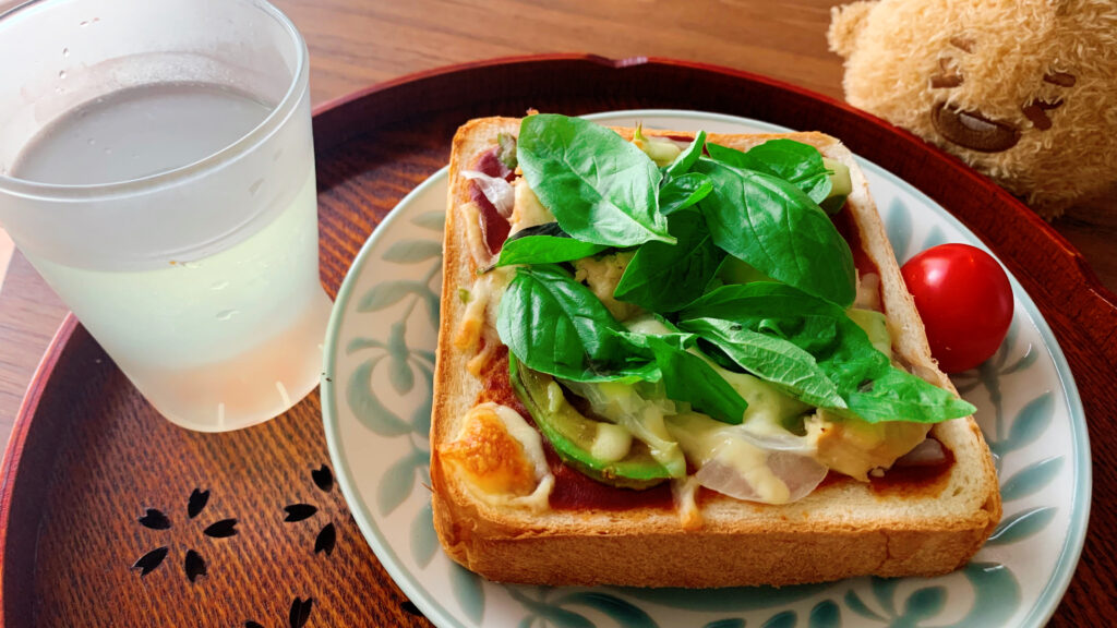 9月6日(土)。高級食パンより美味しくて安い、お気に入りの食パン。焼きたてを買ってきて、好きな具を乗っけてピザトーストにするの、何回やっても最高に贅沢だと思います。見栄えが悪くなった前回の失敗を踏まえ、今回は焼いたあとにバジルを散らしました。アボガドと鶏肉も乗せて完璧です(・ω・)bグッ