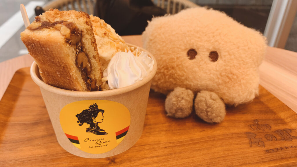 9月11日(木)。またしても雲行きが怪しい午後。なぜ自分が出かけるタイミングに天気が荒れるのかと怯えつつ、千葉の名産ピーナッツを使ったパフェを食べました。《ピーナツクイーン》というお菓子の切れ端が3個に、濃厚なピーナツアイス、砕いたピーナツの粒々と生クリームのトッピング、底にはコーンフレークとメープルシロップ。これで627円とお値段以上のボリュームと味に大満足です。そんなブログ開設2周年(。・ω・ノノ゙パチパチ