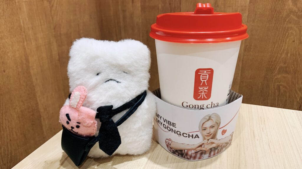映画鑑賞後にふらふらと【貢茶(ゴンチャ)】に入ったら、スキズのピリちゃんことフィリックス氏がグローバルアンバサダーを務めてるらしく、カップホルダーが付いてきました。店内では【StrayKids】のMVが流れていて、なんだか得した気分です。“CASE 143”やっぱ好き(*^^*)ニコニコ