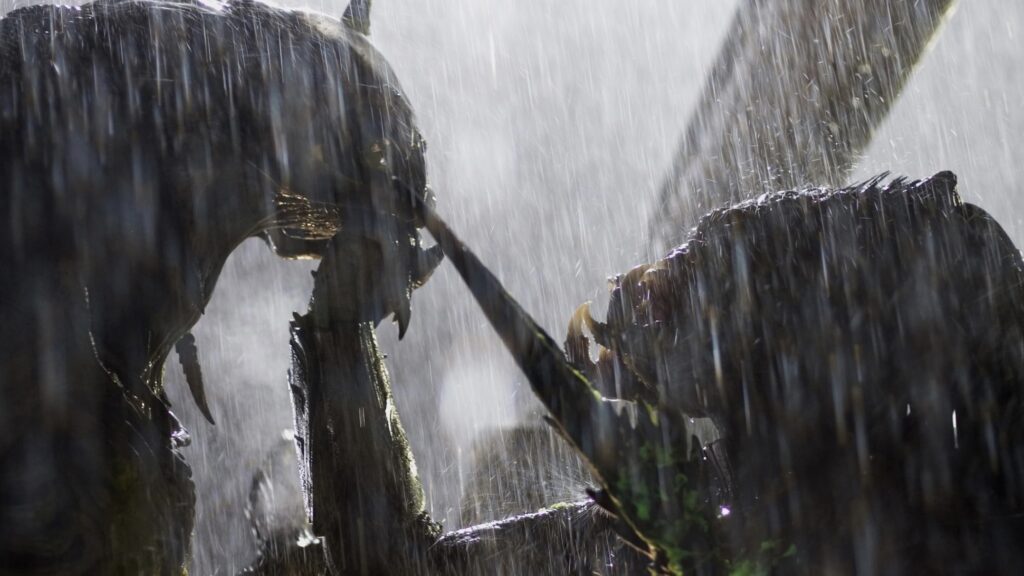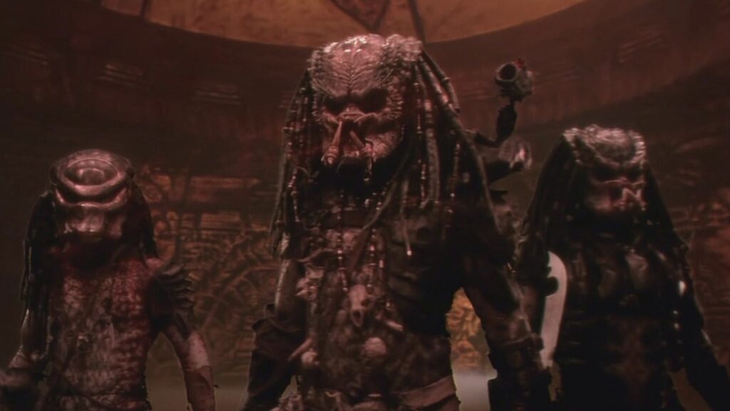 エイリアンの嫌な生態とエグい造形は健在ですが、一体あたりが弱いのでザコっぽい扱いなのが微妙です。そんな生物を繁殖させて成人の儀式に使ったり、手に負えなくなると爆殺するプレデターも大概アホだと思います。人間たちはいわずもがな、三者三様その調子なので邪悪さがないのが本作の良いところかもしれません(o^^o)ニッコリ