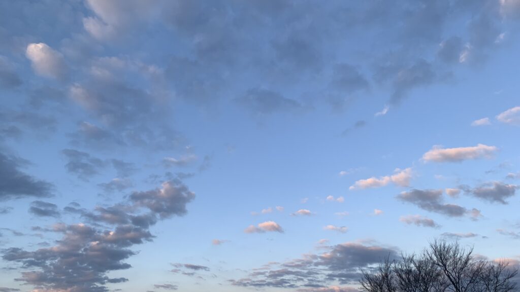 西の空のほうが雲が少ない。