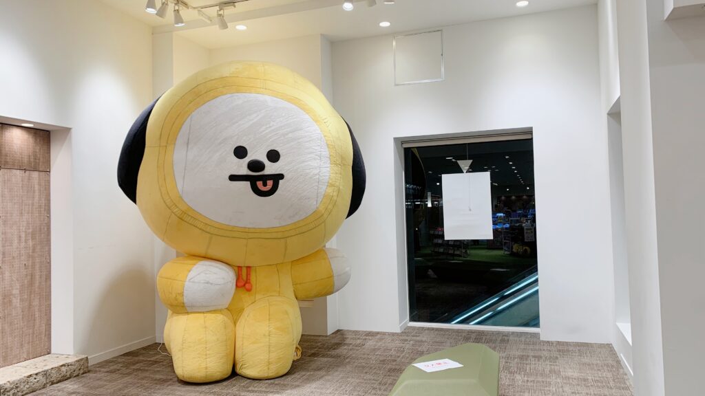 ラーメンの次は【貢茶(ゴンチャ)】でお茶をして、《実物大ガンダム》をなんとか遠目にでも見れないだろうかとショッピングモールを無駄に彷徨いました。最終的にはせっかくだから行ってみようということになり、ダイバーシティ方面へ。途中でBT21のポップアップストアを発見(・△・)ビックリ
