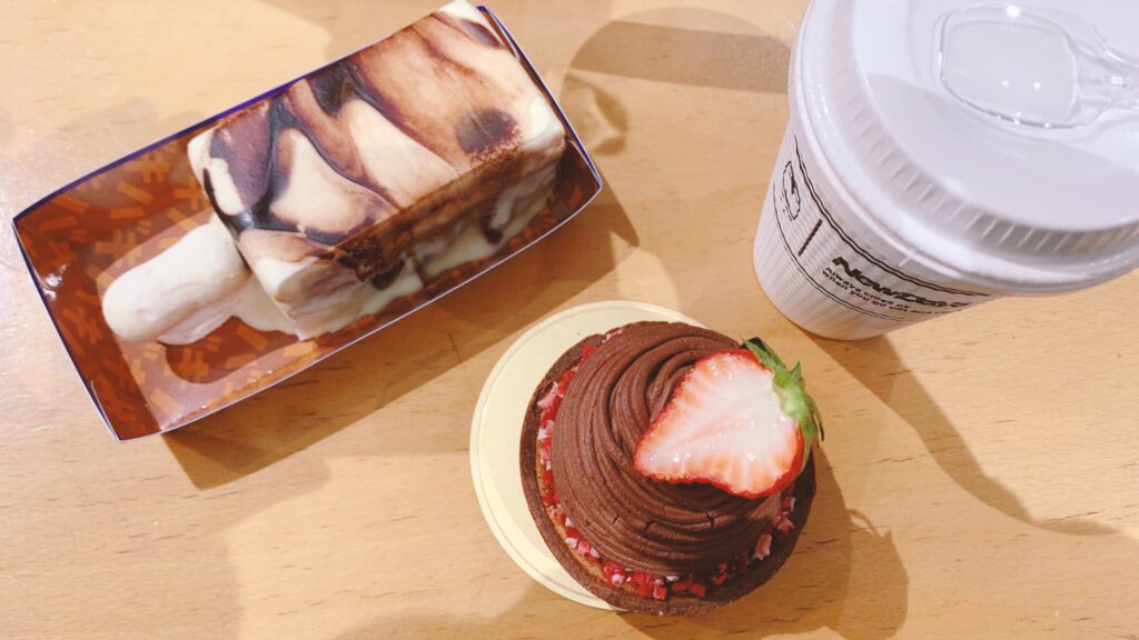 ゆりかもめで新橋駅に戻り、乗り換えついでに【YATSUDOKI汐留日テレプラザ店】に向かいました。が、お茶する予定のイートインスペースは18時で終了、なんと今月末には閉店とのこと。昼食に続いてどうもアテが外れます。自分は《ショコラモンブラン》560円、姉は《チョコバッキーケーキ》550円を購入して東京駅へ。《銀の鈴》の近くの広いベンチで、コンビニ珈琲と一緒に頂きました。遊ぶ相手が姉だからできるこのユルさ(°▽°)エヘ