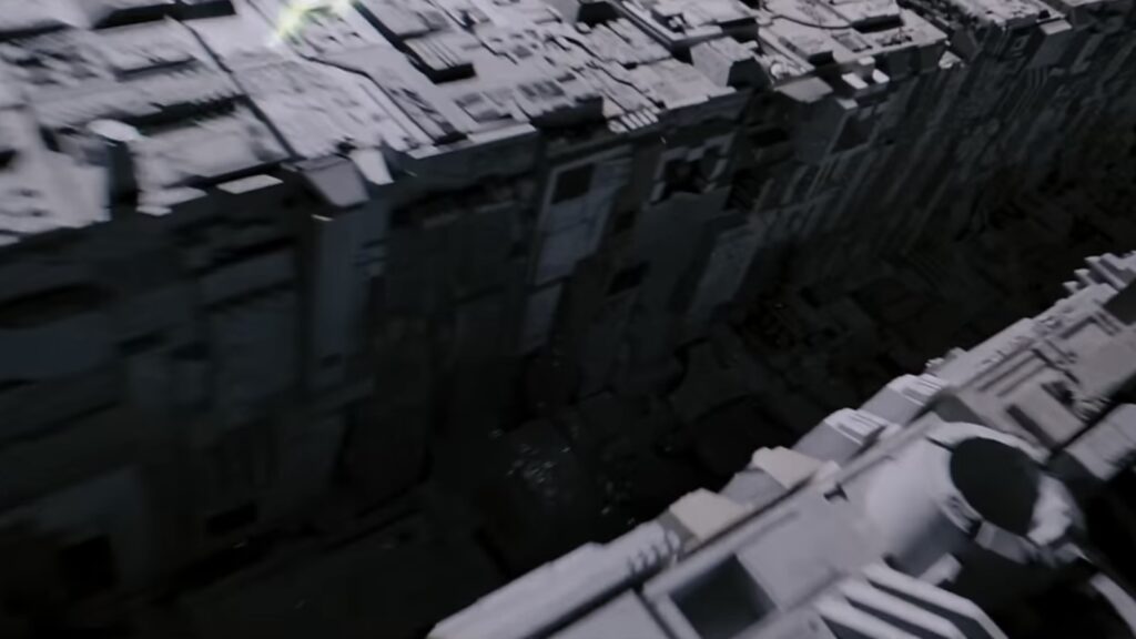 次はお隣の《ワイルドウイング》。スクリーン映像とゴンドラを組み合わせた、ディズニーでいえば《スター・ツアーズ》タイプのアトラクションです。この日のジョイポリスの乗り物のなかでは一番好きかもしれません。なぜならまさにスターウォーズでいうところの〝トレンチ・ラン〟があったから。ちなみにトレンチとは溝・塹壕のこと。英国軍服を起源とするトレンチコートも同じ意味です(o^-‘)bマメチシキ